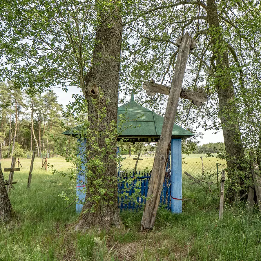 🔹 Obecność kapliczki i krzyży wotywnych podkreśla ciągłość tradycji religijnej i lokalnej tożsamości mieszkańców.