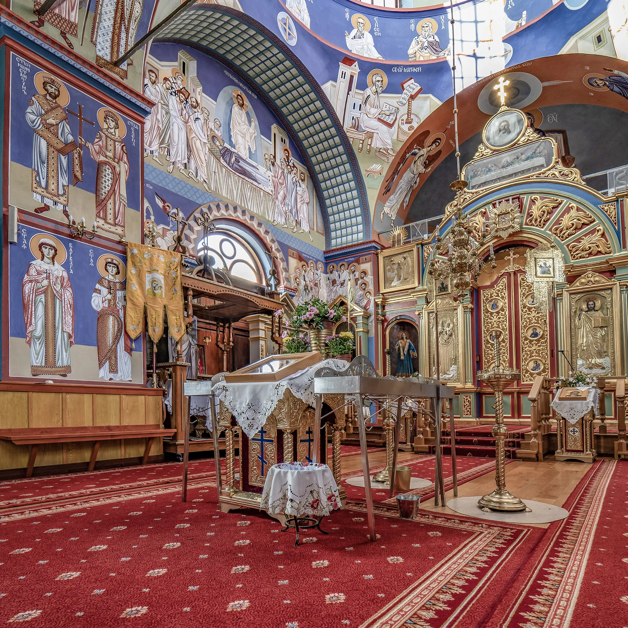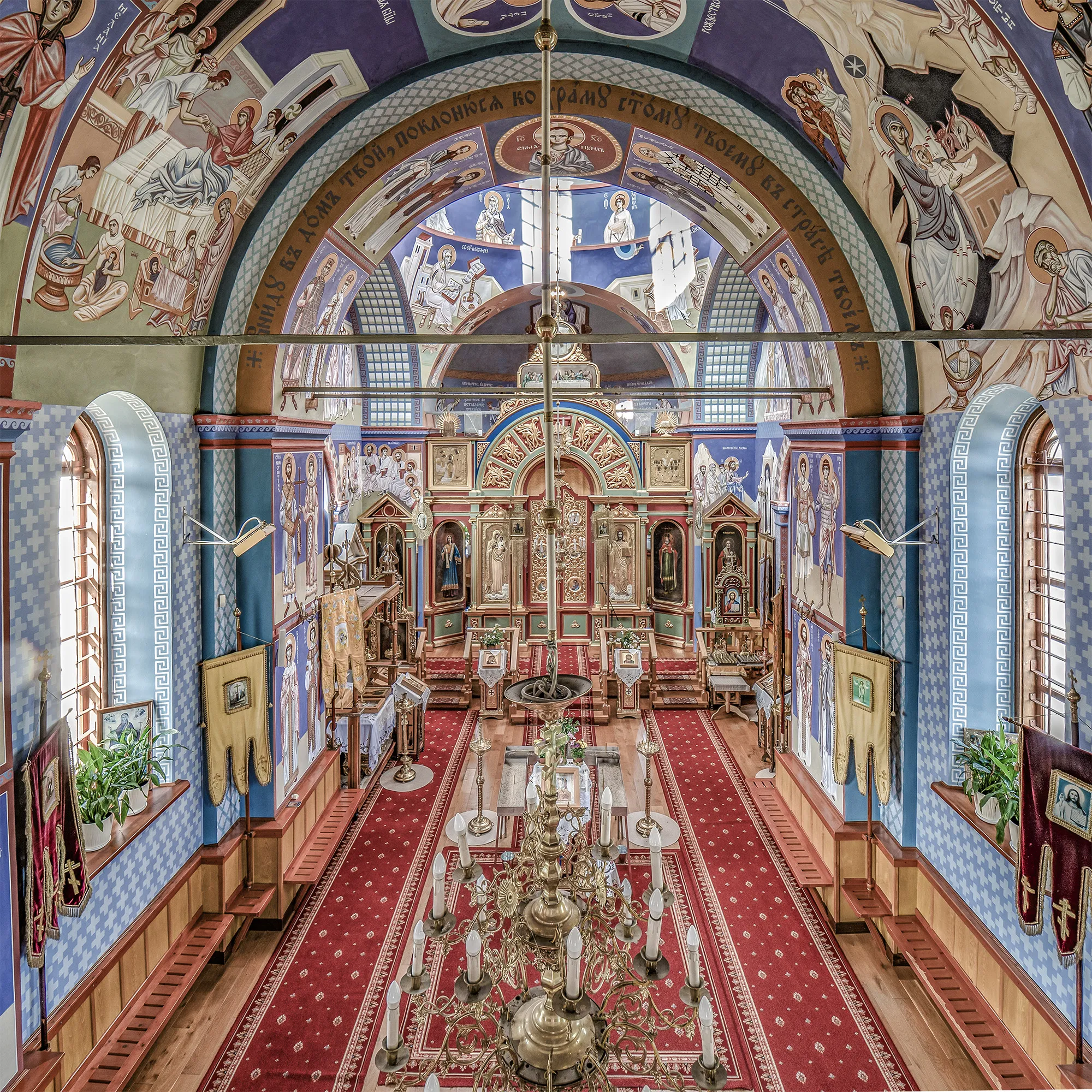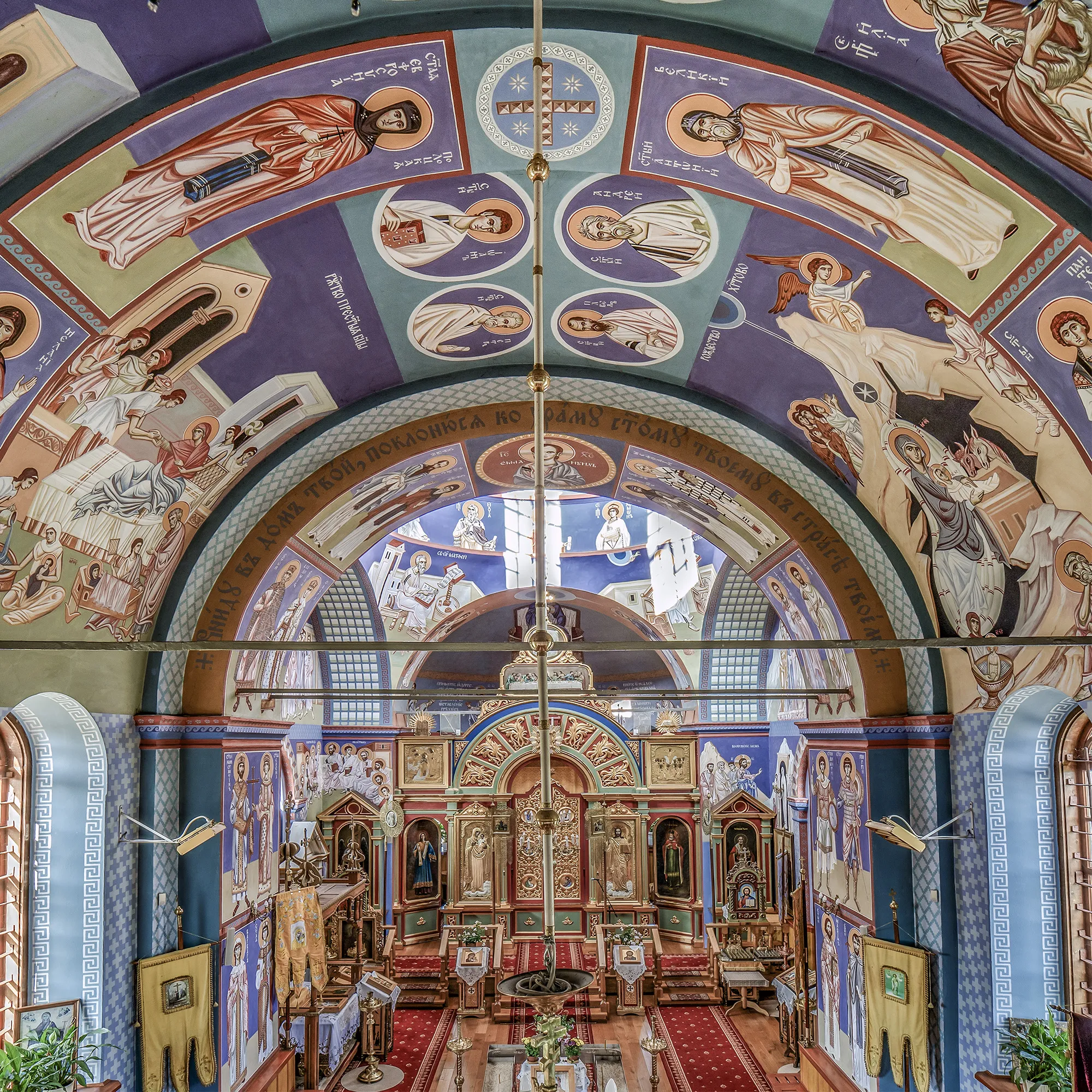 🔹 We wnętrzu zachowały się oryginalne polichromie oraz XIX-wieczny ikonostas.