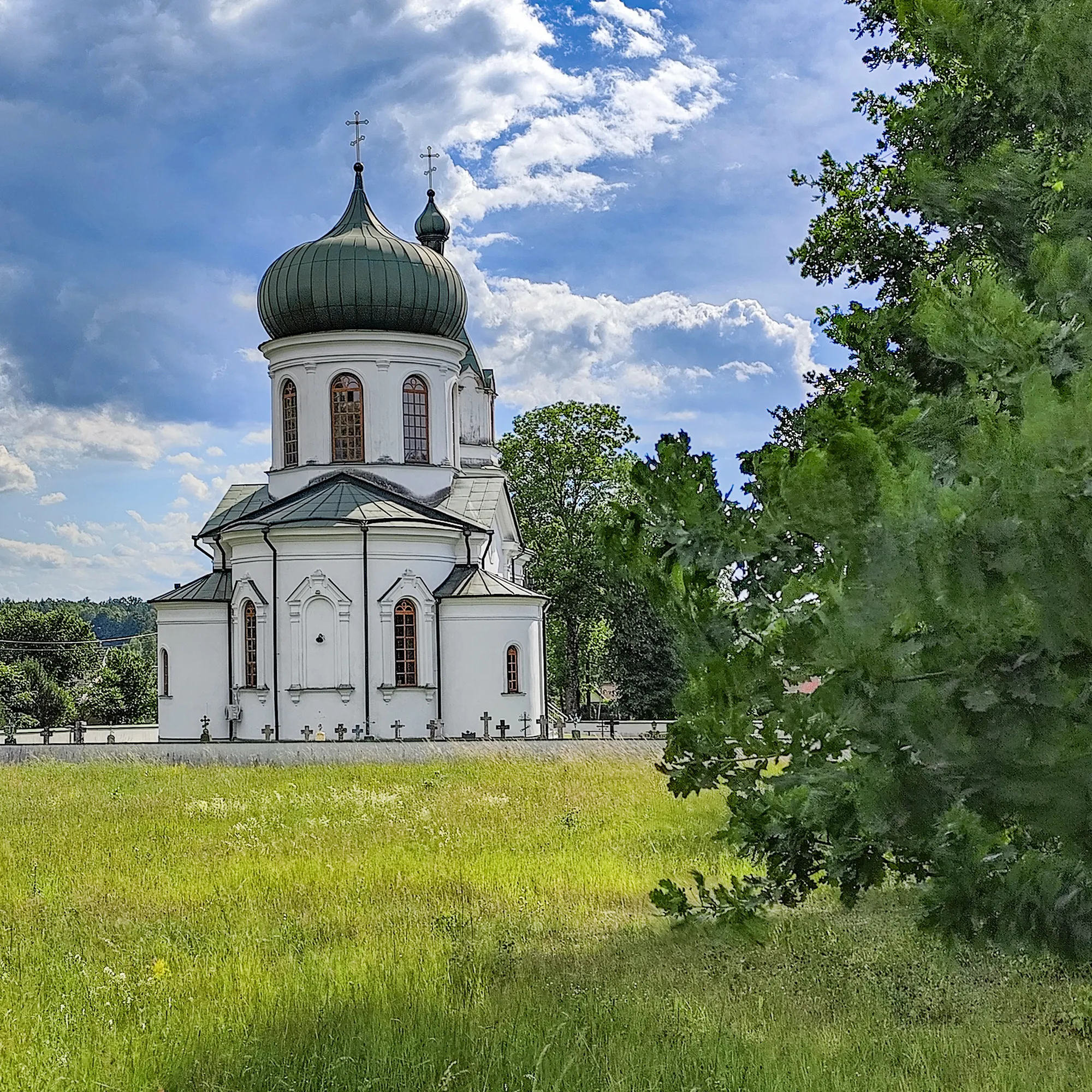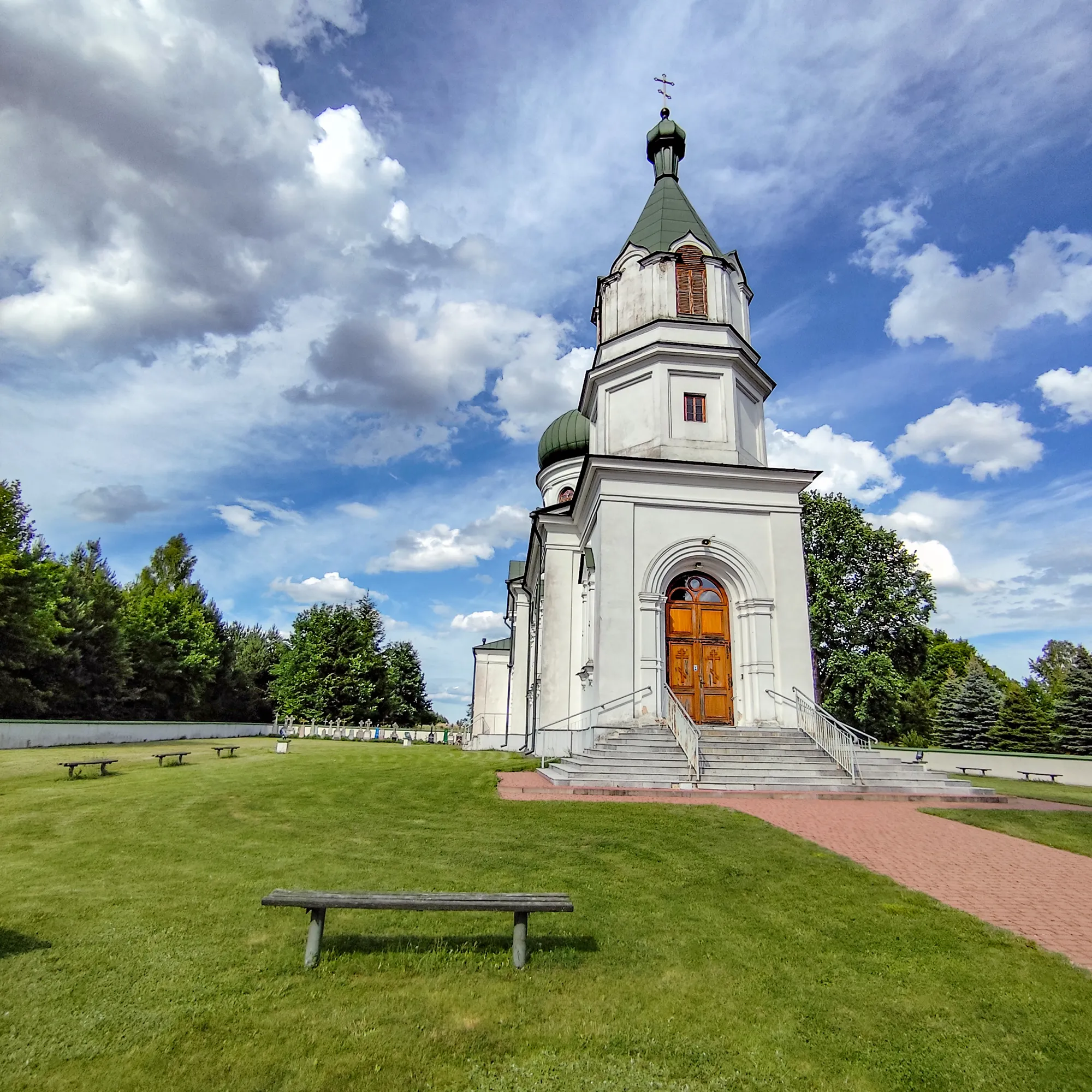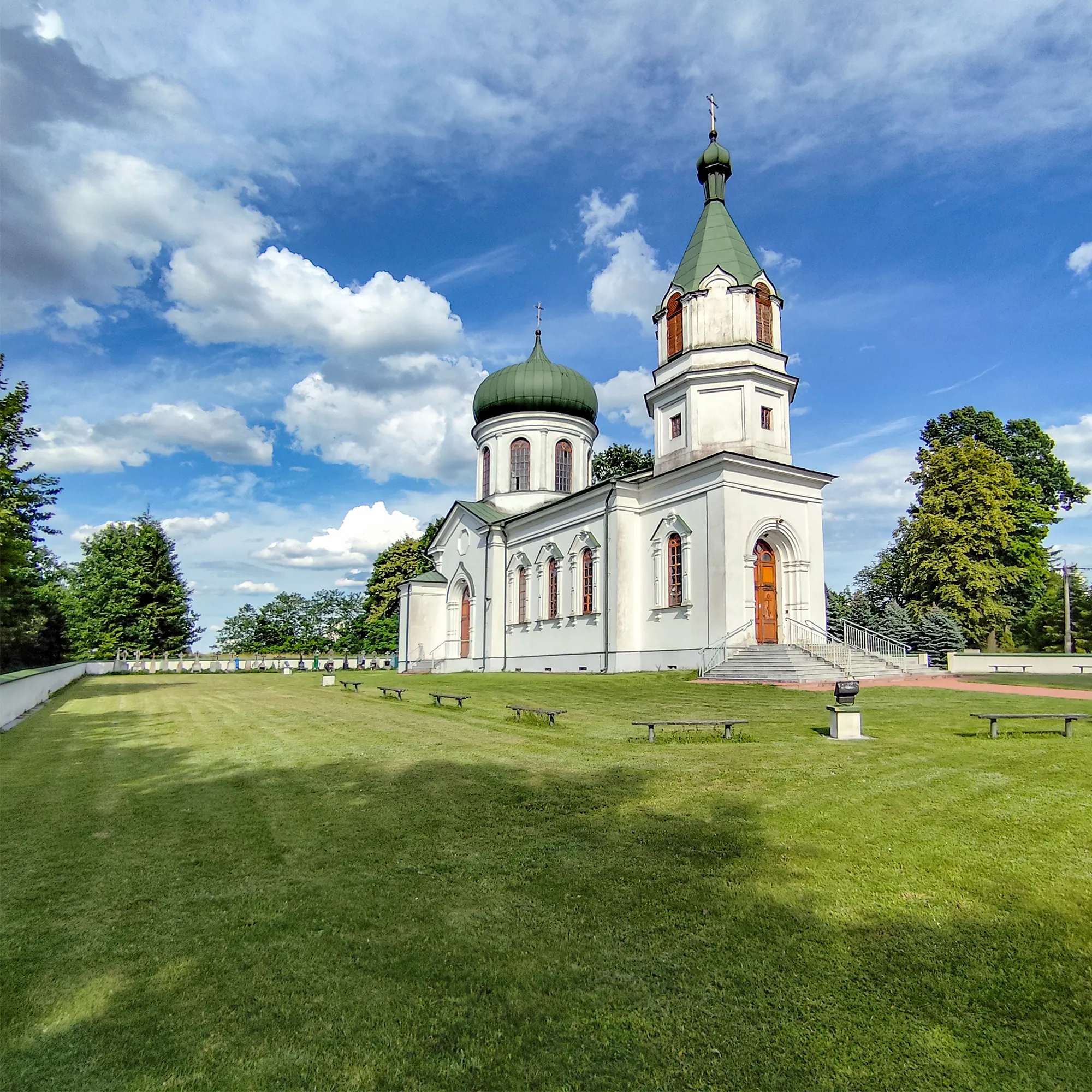 🔹 Charakterystyczna jest centralna kopuła oraz trójkondygnacyjna wieża, widoczna z daleka w krajobrazie Narewki.
