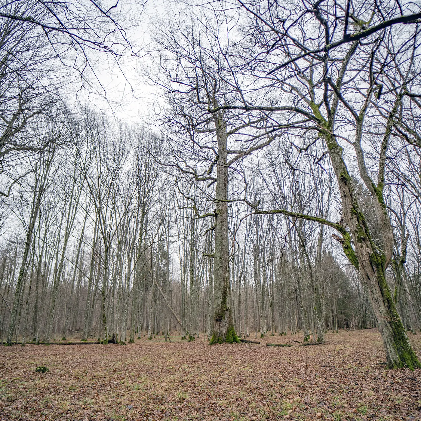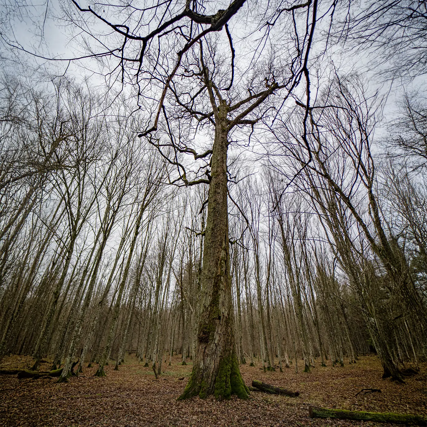 🔹 Dęby mają smukłą, kolumnową formę i prosty pień — rosną w „parkowym” siedlisku, dzięki czemu wyróżniają się spośród drzew typowych dla Starej Białowieży.