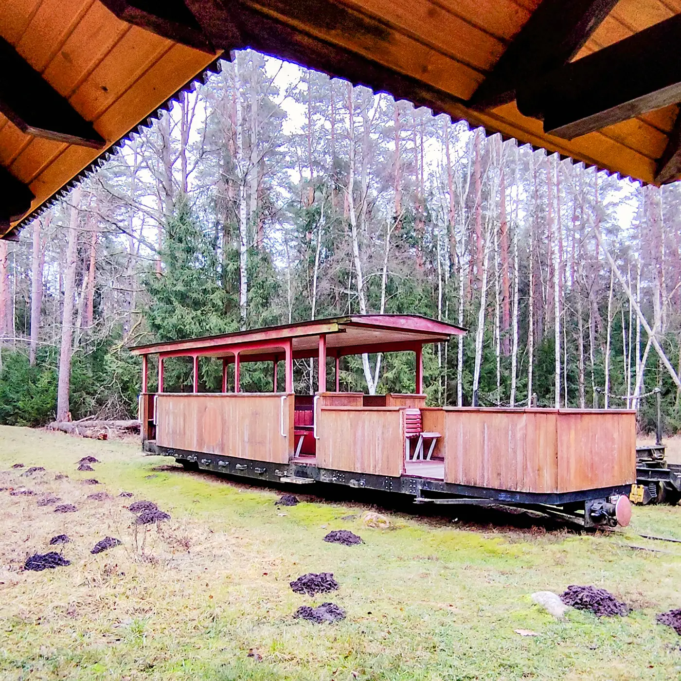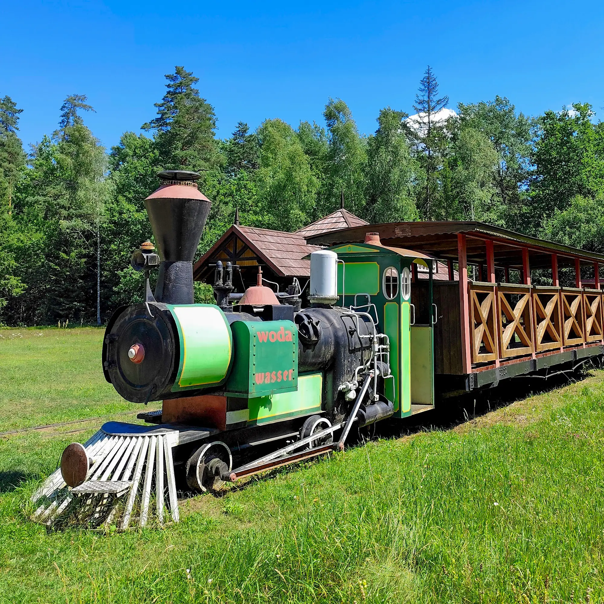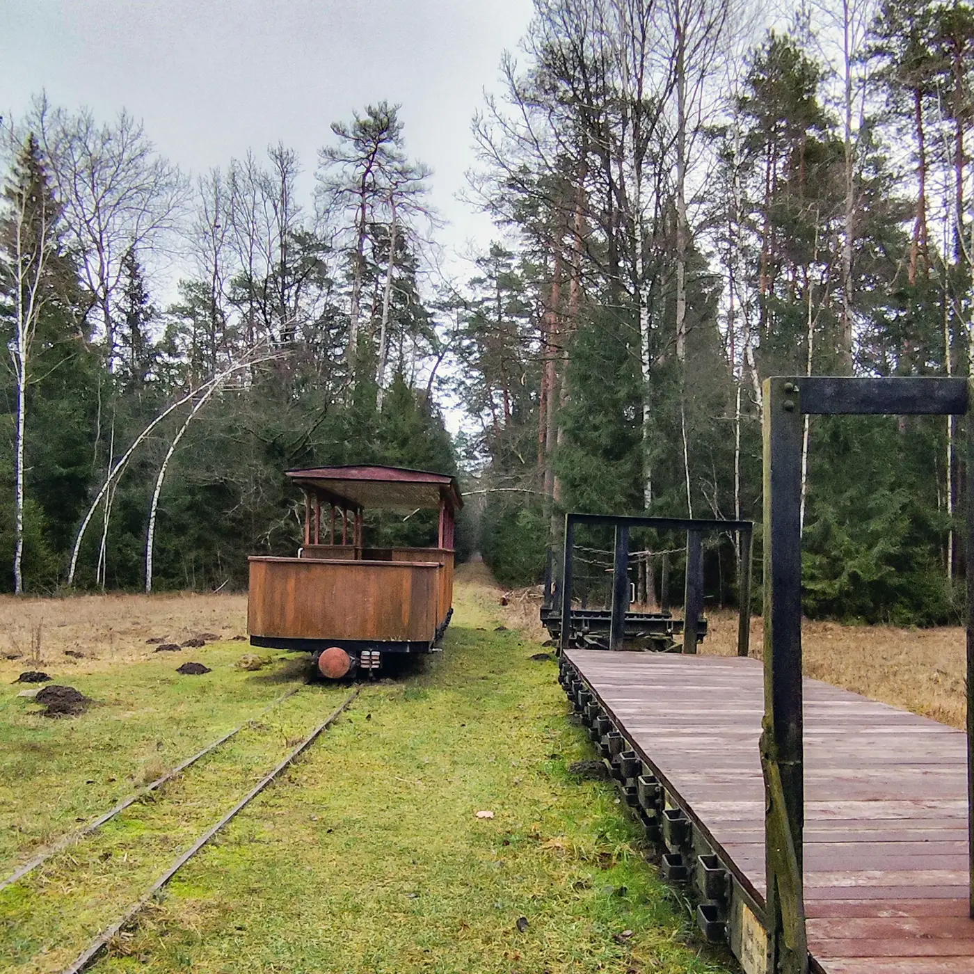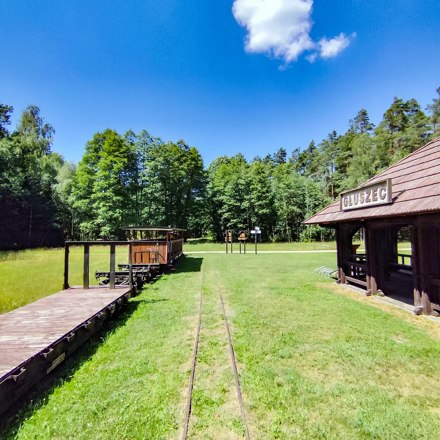 W pobliżu szlaku znajduje się mini-skansen leśnej kolejki wąskotorowej, będący pamiątką po sieci kolejek zbudowanych przez Niemców podczas I wojny światowej do transportu drewna z puszczy . Skansen jest ogólnodostępny i bezpłatny