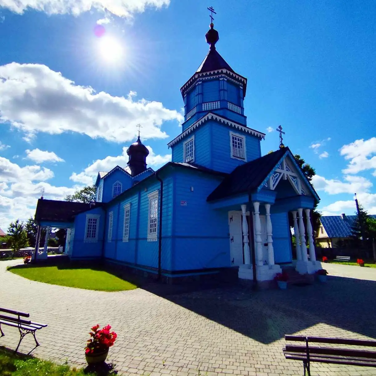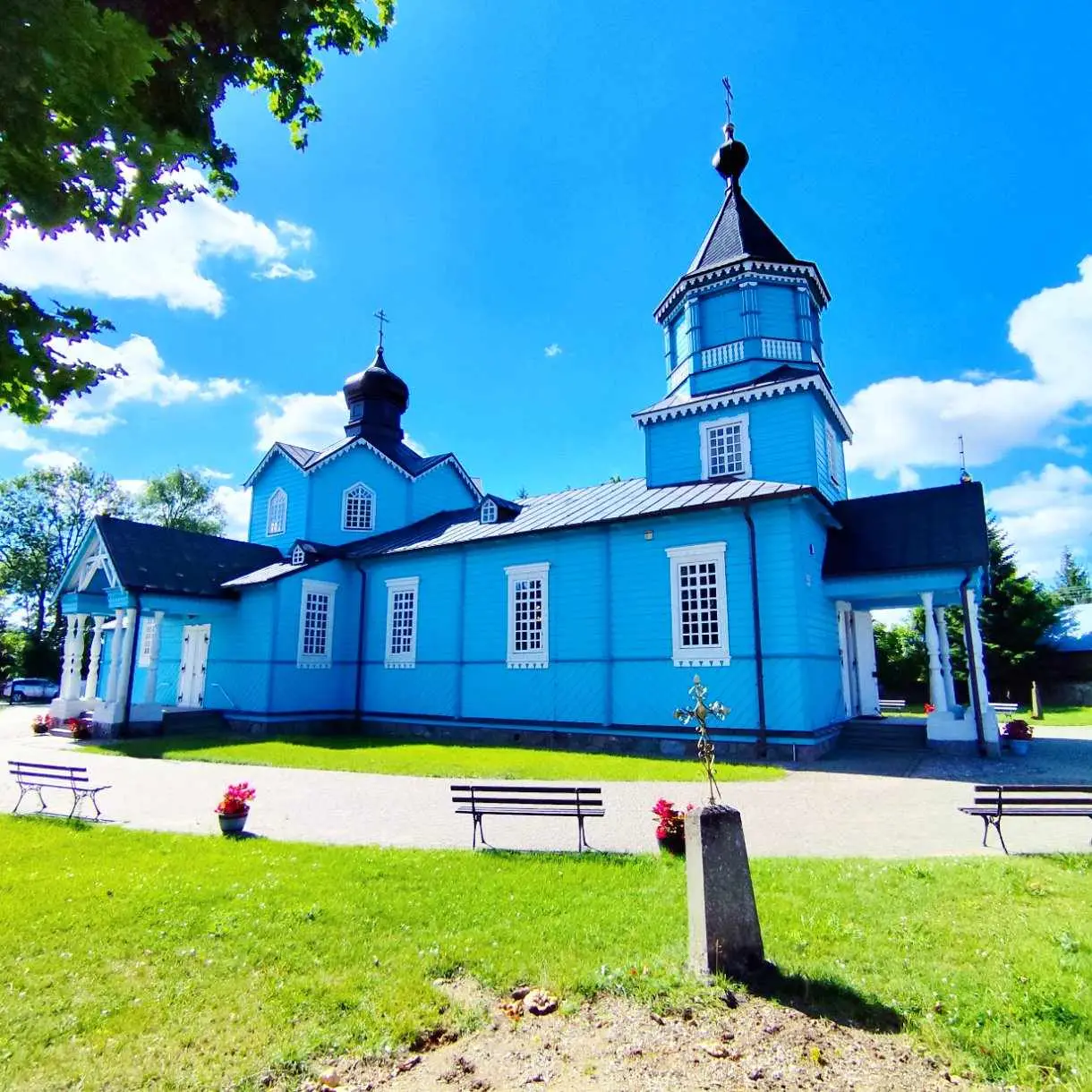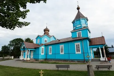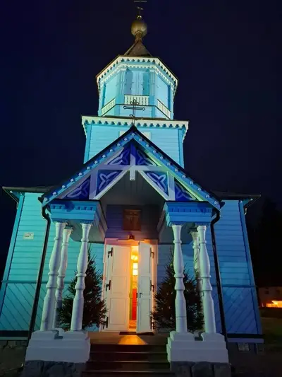 Parafia w Narwi ma korzenie sięgające początków XVI wieku, a pierwsza wzmianka o tutejszej cerkwi pochodzi z 1560 roku. Obecna świątynia, wzniesiona w 1882 roku i konsekrowana w 1885, to majestatyczna konstrukcja drewniana zbudowana na planie krzyża łacińskiego. Jej smukłe sylwetki i charakterystyczne portyki z sześcioma kolumnami przy wejściach przyciągają wzrok, a po wejściu do środka czeka Cię prawdziwa uczta dla duszy – odrestaurowany po pożarze w 1990 roku ikonostas i polichromie, które wypełniają wnętrze ciepłem i mistycyzmem.