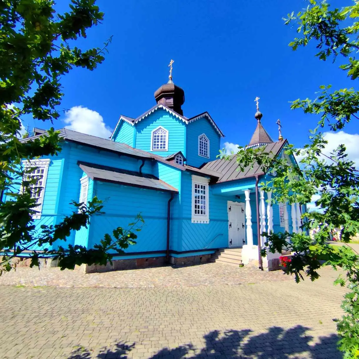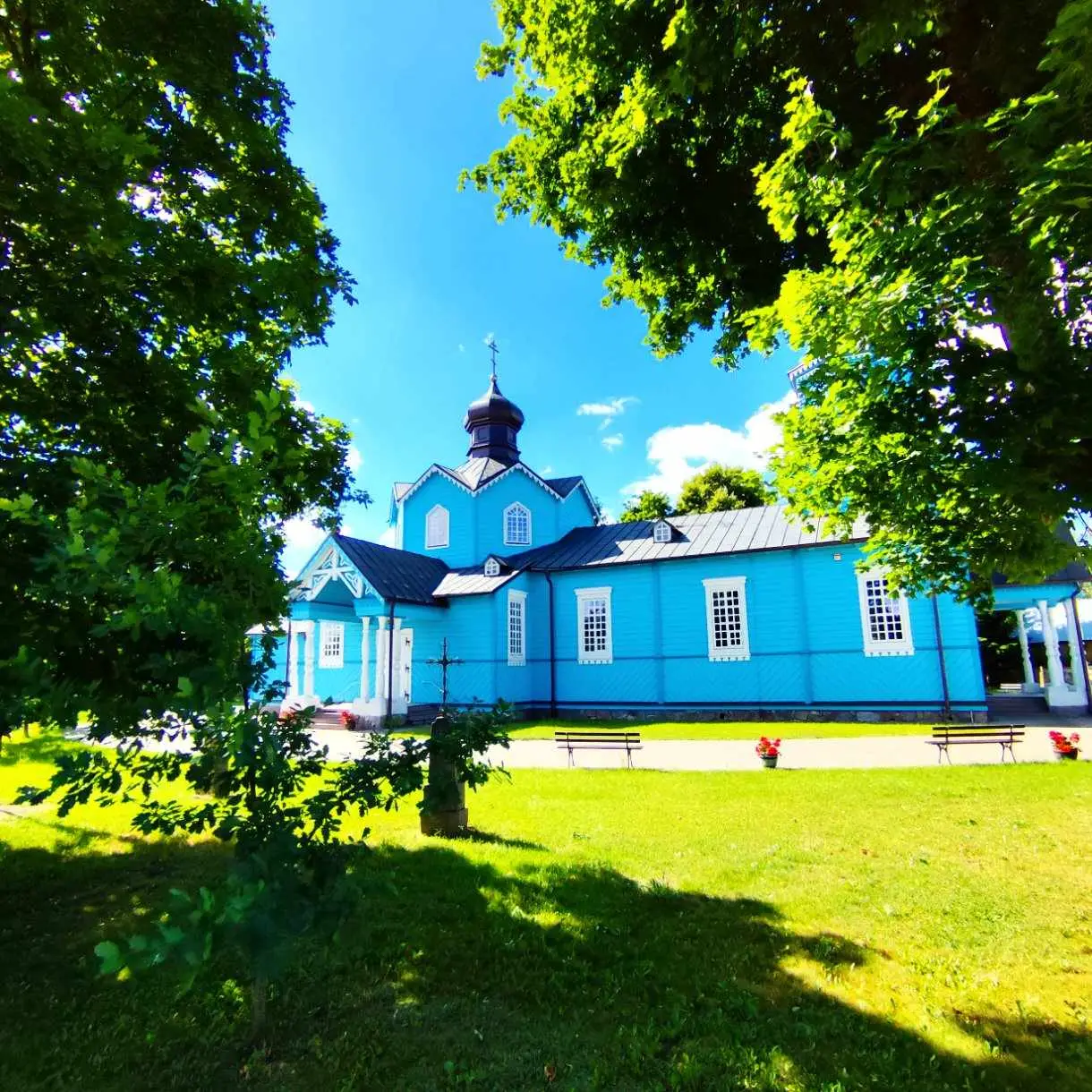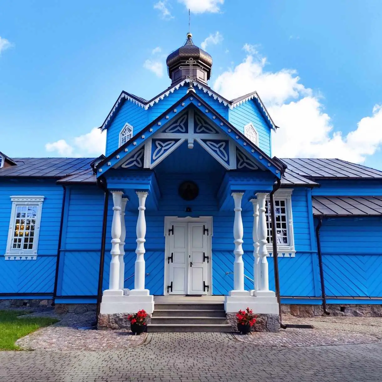 Parafia w Narwi ma korzenie sięgające początków XVI wieku, a pierwsza wzmianka o tutejszej cerkwi pochodzi z 1560 roku. Obecna świątynia, wzniesiona w 1882 roku i konsekrowana w 1885, to majestatyczna konstrukcja drewniana zbudowana na planie krzyża łacińskiego. Jej smukłe sylwetki i charakterystyczne portyki z sześcioma kolumnami przy wejściach przyciągają wzrok, a po wejściu do środka czeka Cię prawdziwa uczta dla duszy – odrestaurowany po pożarze w 1990 roku ikonostas i polichromie, które wypełniają wnętrze ciepłem i mistycyzmem.