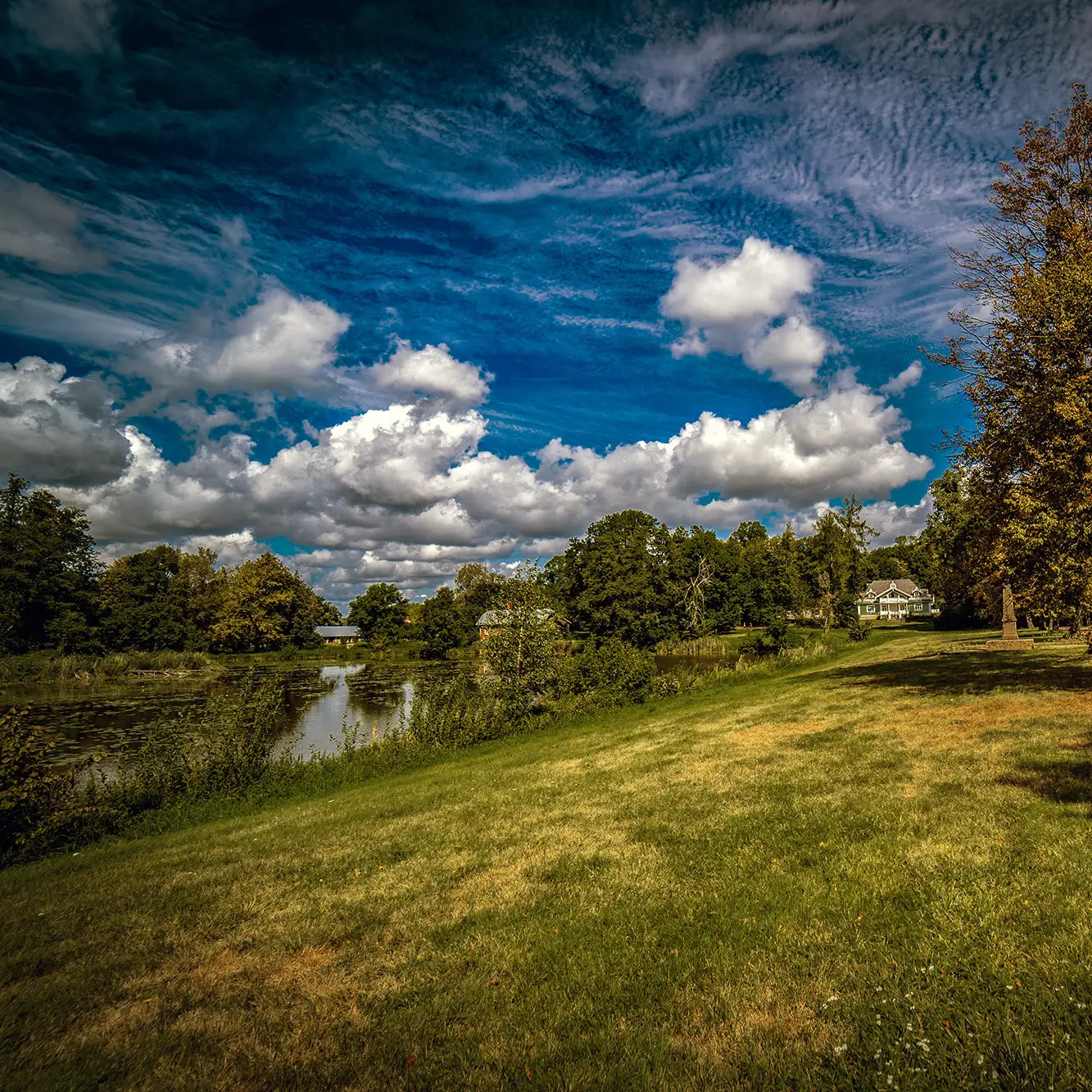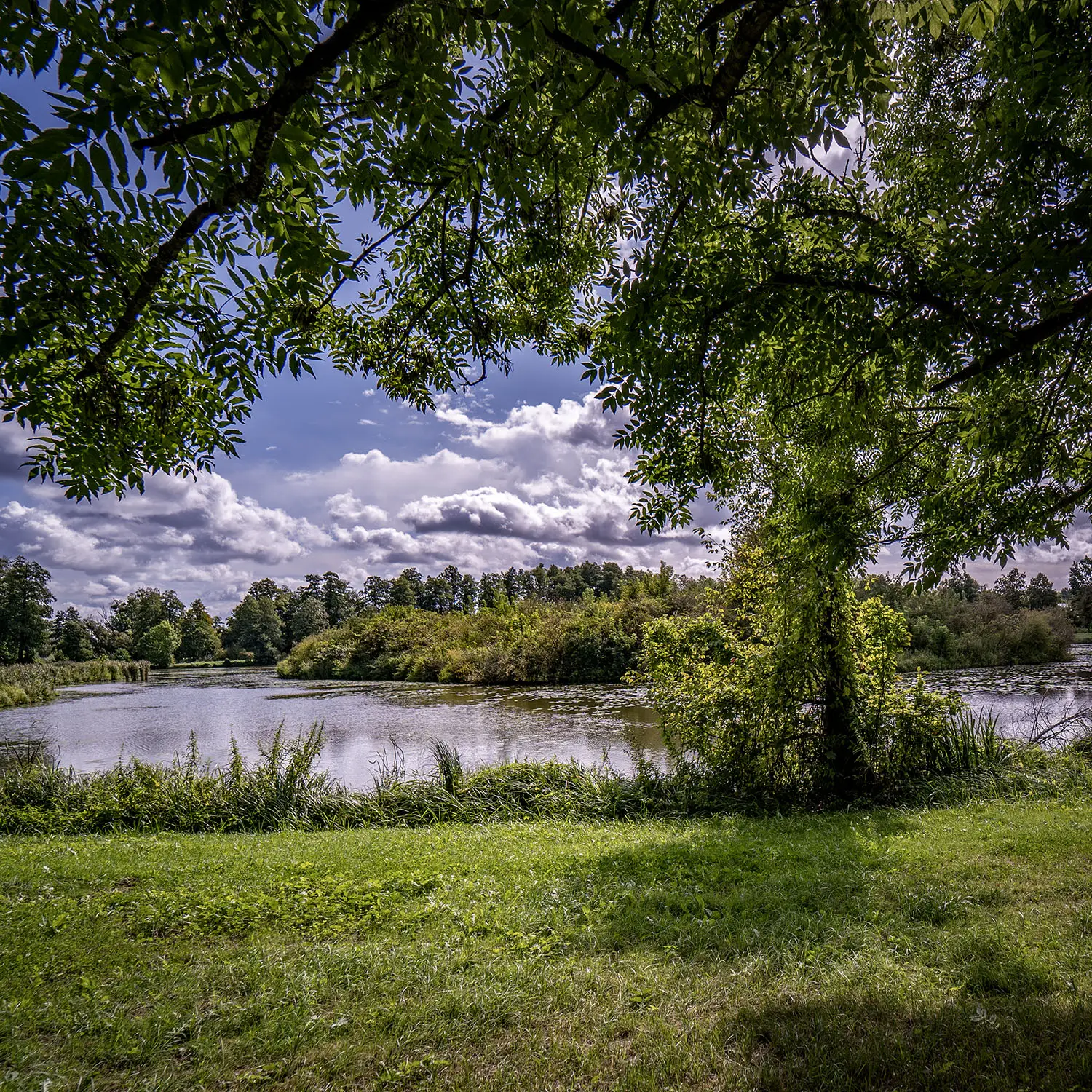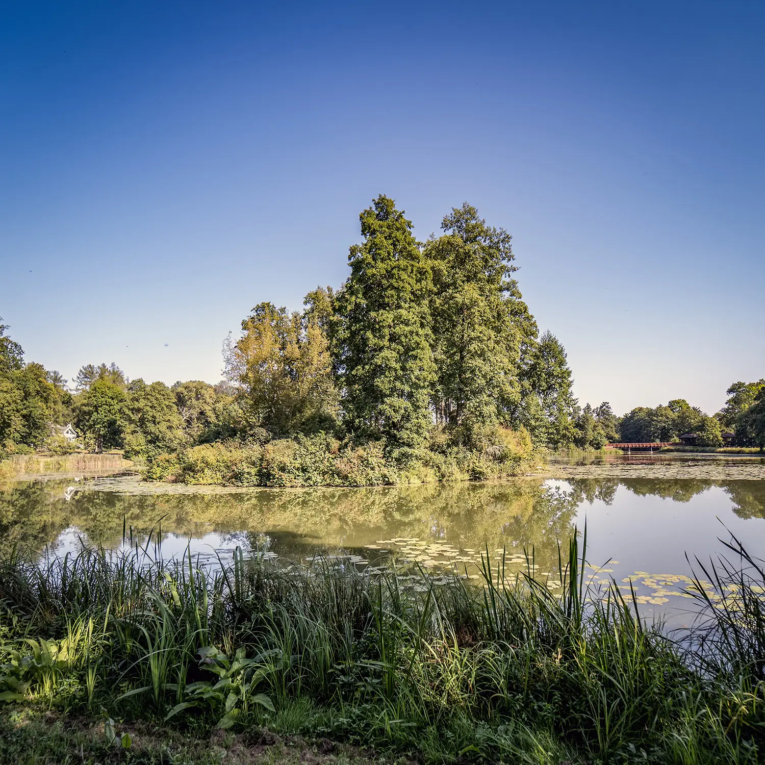 Pierwotnie przez oba stawy, wschodni i zachodni, przepływała rzeka Narewka, co nadawało im dodatkowy urok. Każdy z nich miał po dwie wyspy: jedną dużą i jedną małą. Z czasem jednak mała wyspa na stawie zachodnim połączyła się z dużą, a na stawie wschodnim – z północnym brzegiem stawu. Obecnie tylko wyspa na stawie zachodnim jest zadrzewiona, podczas gdy wyspa na stawie wschodnim stopniowo się zakrzacza. Stawy są przedzielone groblą, która umożliwia turystom wejście do parku bezpośrednio z parkingu. Do stawu wschodniego doprowadzają wody z niewielkiego stawku ze źródełkiem, położonego u podnóża pobliskiej skarpy.