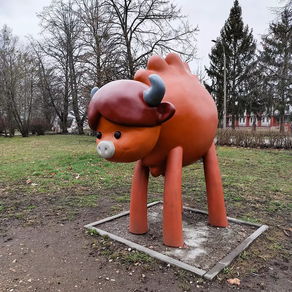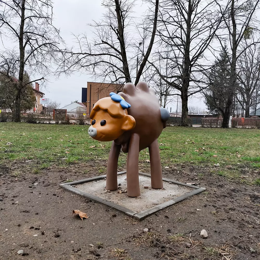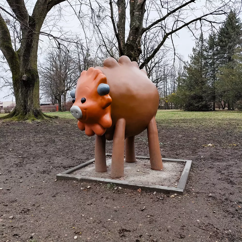 Żubr Pompik i jego rodzina mają swój "dom" — na polanie w wydzielonej strefie w Parku Miejskim w Hajnówce spotkać można naturalnej wielkości figury: Pompika, jego mamy Porady, taty Pomruka i siostry Polinki.