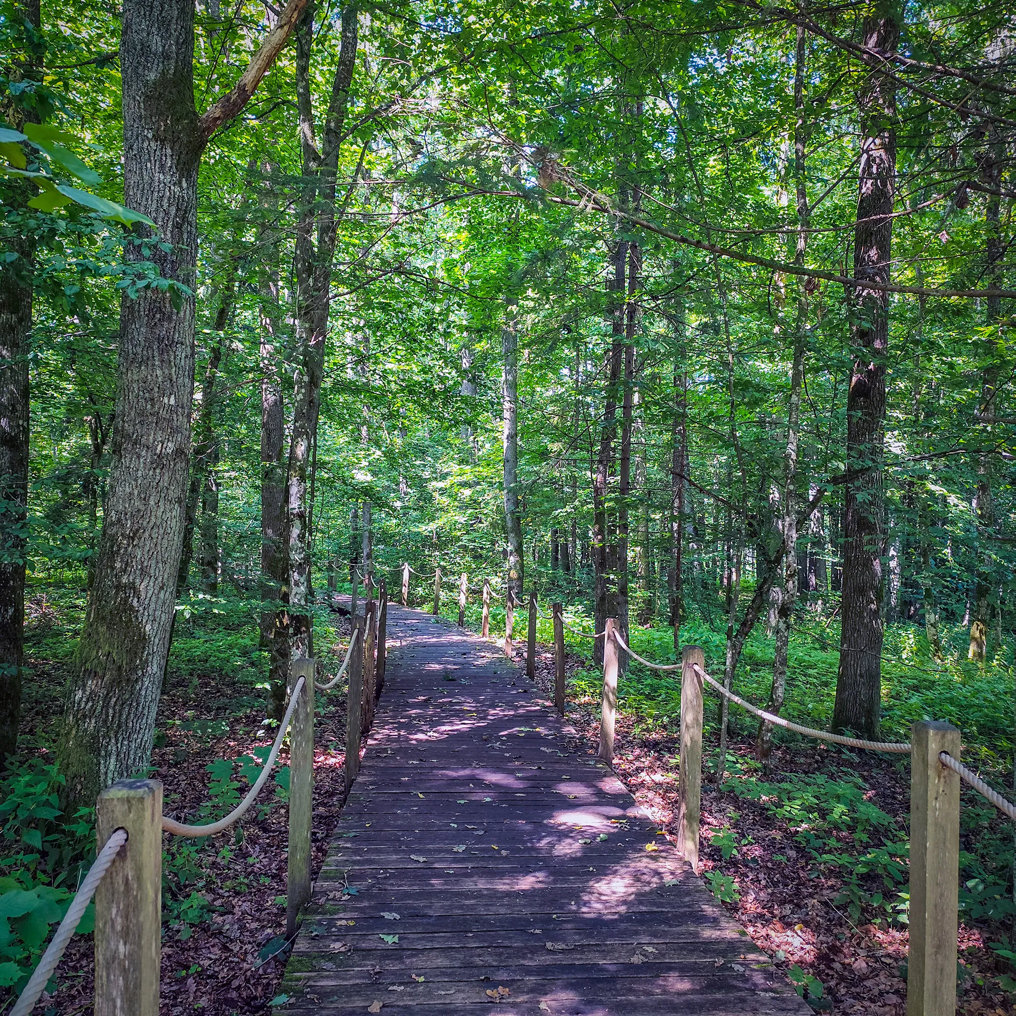 🔹 Długość trasy: ok. 0,8–1 km (pętla po drewnianej kładce)